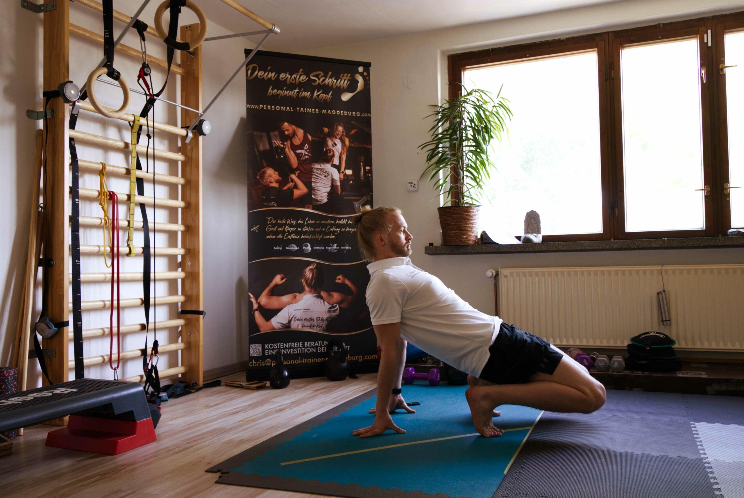 4. One Leg Knee Stand: Kippe dein Becken immer wieder vor und zurück. Hierzu werde ich später auch noch ein Video machen (Sofastretch Profi-Variante).